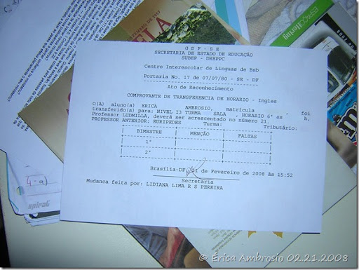 I know that is just a paper, but it is so important for me. I changed the hour of my English classes. And now I am in the grade I would do next semester. I am so happy for this. That paper is talking just about it.