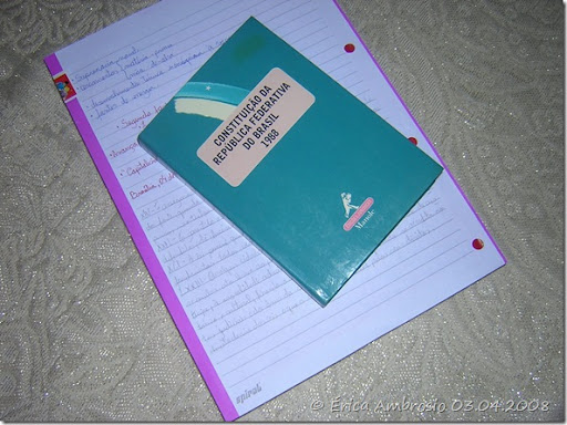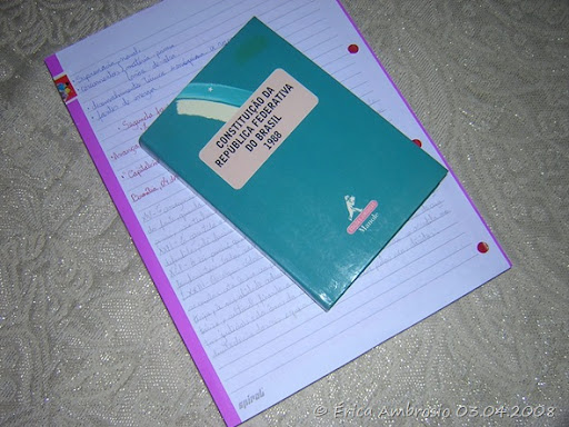 The Brazilian Constitution. I needed to read the 05th article and write why that from the idea os Montequieau, Rousseau, and other guys I do not like so much.