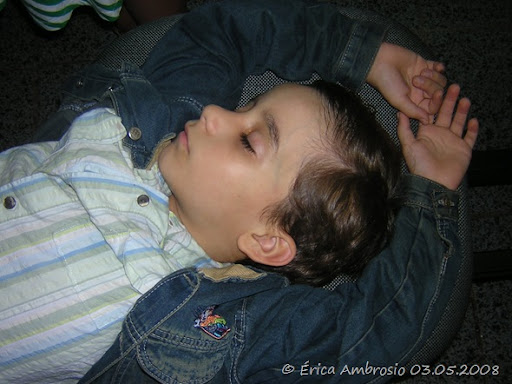 João Marcelo sleeping. He is so cute sleeping. Awakeing too. I like him so much. He is seven years old. His brother Luiz Eduardo said me: "João loves to sleep." Me: "You too." Him: "I don't." So I said: "Did you think I did not see you sleeping last meeting?" He was shy and go away. lol I am bad....